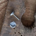 Sterling silver studs earrings — circle posts with our signature hand-stamped textures. A subtle black patina and shiny finish bring out the details. Sterling silver post wires and ear nuts. Satin finish.