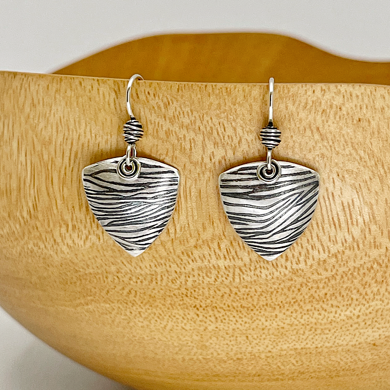 Sterling siver earrings, stripped, stamped, dangles, circles and lines