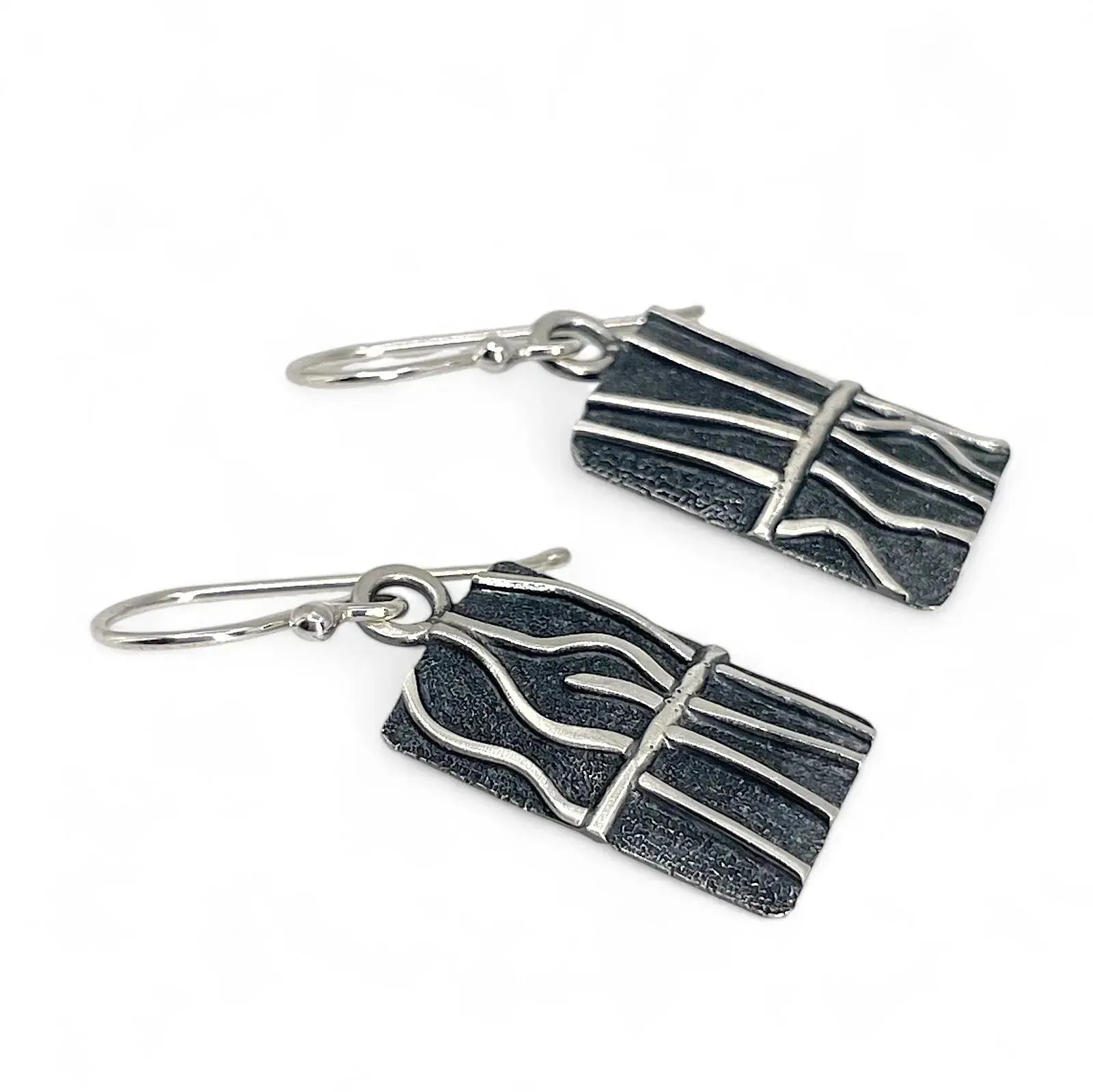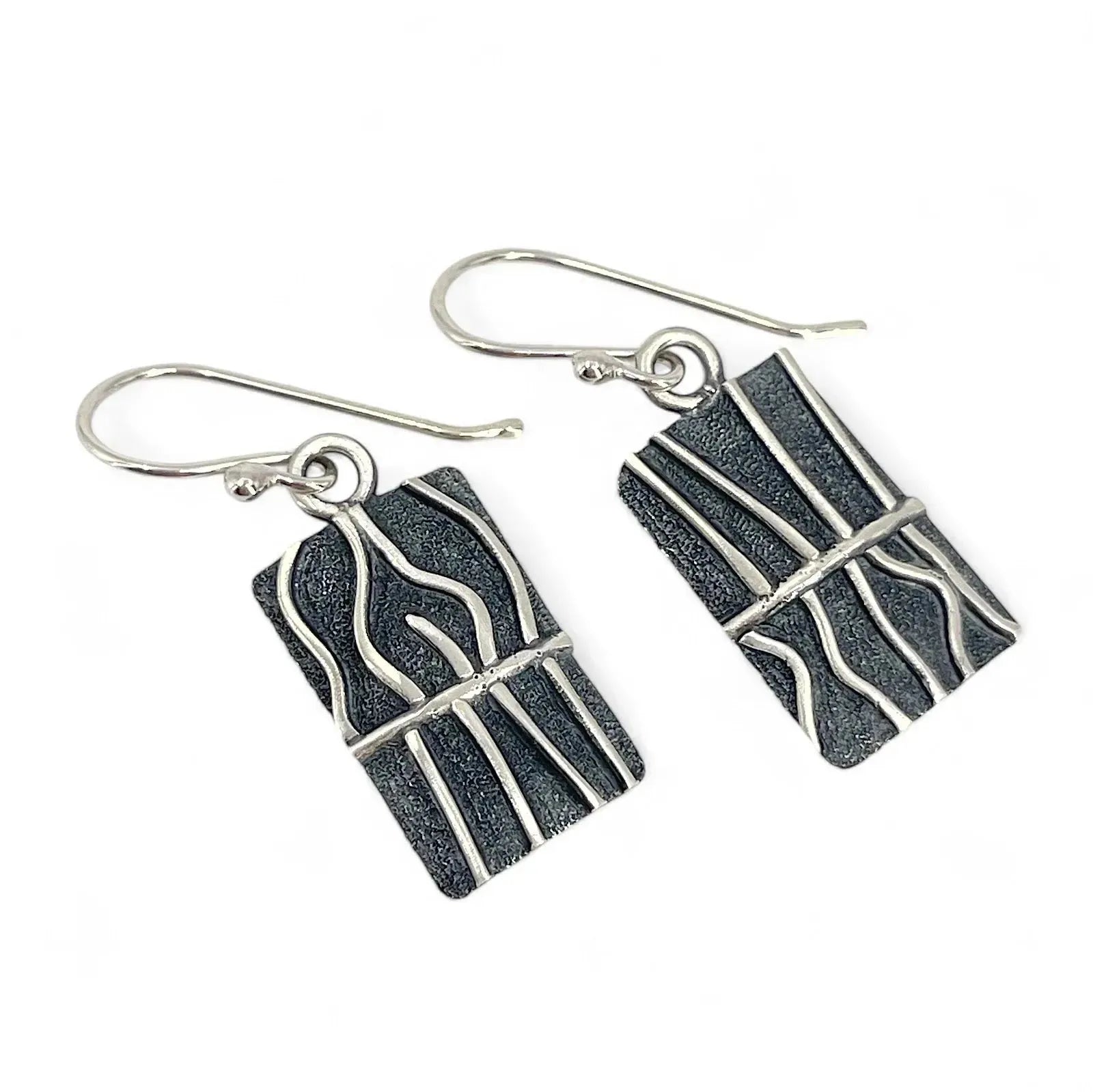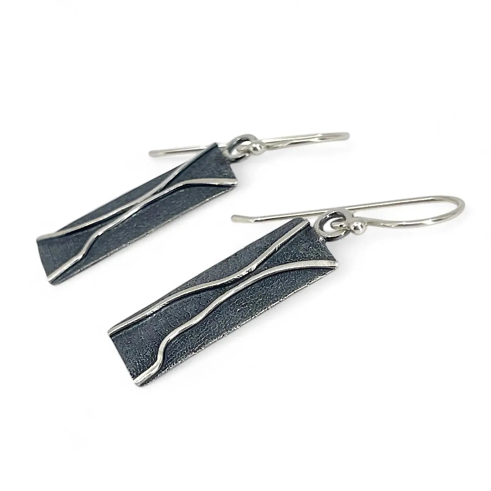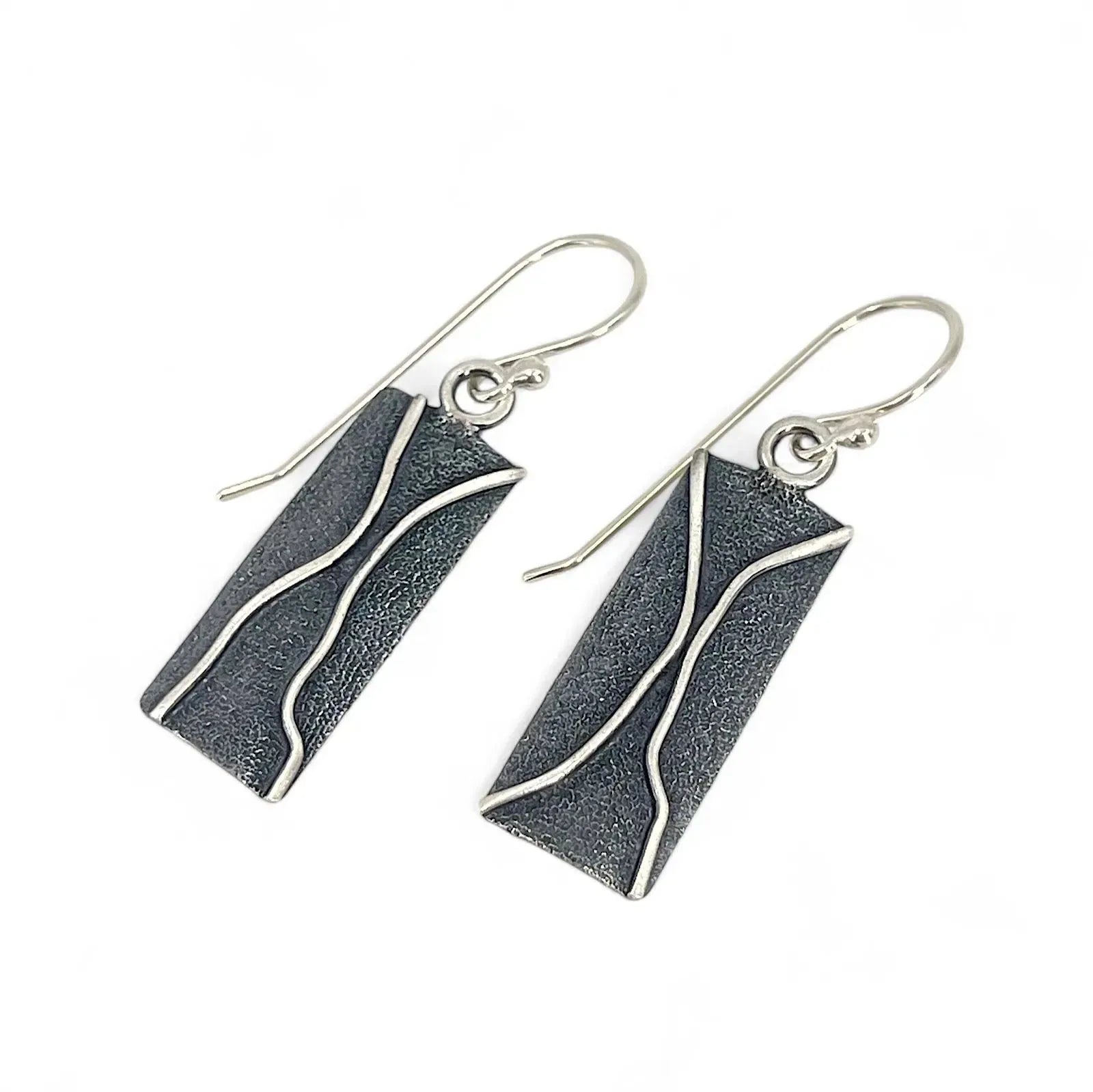 Handcrafted sterling silver and patina earrings, created with a spontaneous, fluid way of designing to create organic forms, embracing curves, and contrasting geometric precision that reflect a modern aesthetic. Artistic craftsmanship, designed to enhance your individuality and style. Order your one-of-a-kind sterling and patina earrings today for a unique, artistic addition to your jewelry collection.