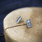 Hand-stamped sterling silver post earrings with black patina. Shiny finish. Sterling silver posts and ear nuts.