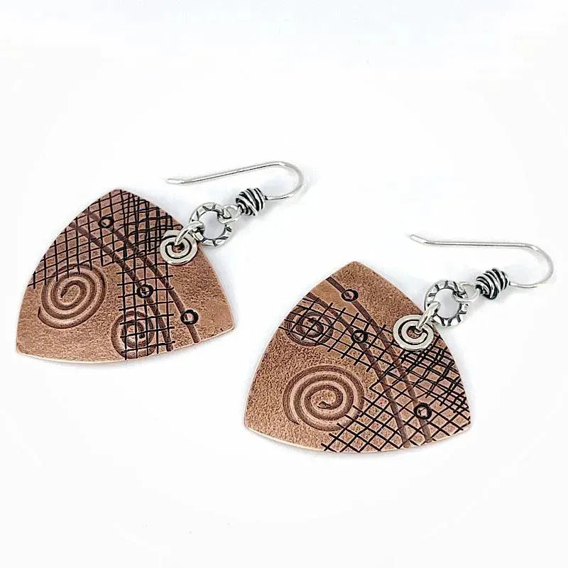 Copper Graphite Patina and Sterling Earrings by Kristin Christopher