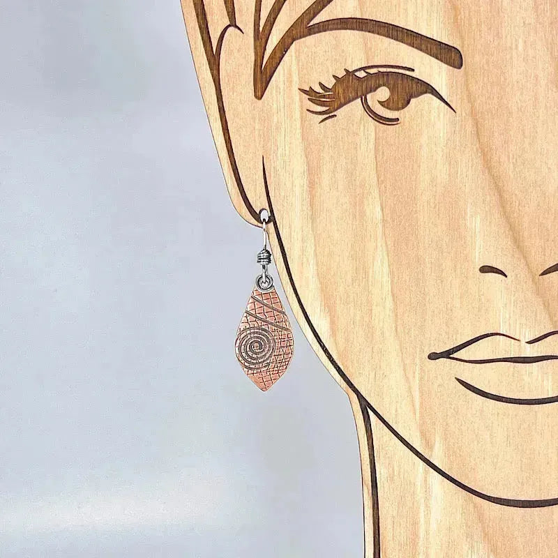 Every pair of our copper graphite patina and sterling earrings have a unique textural pattern from the next, there is only one of each. Each piece is sealed to maintain the true colors.