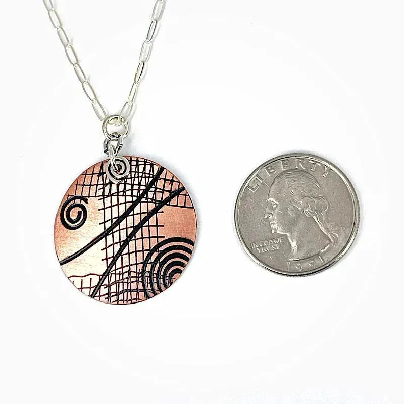 Copper Graphite Patina and Sterling Necklace by Kristin Christopher