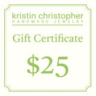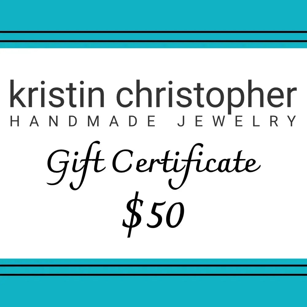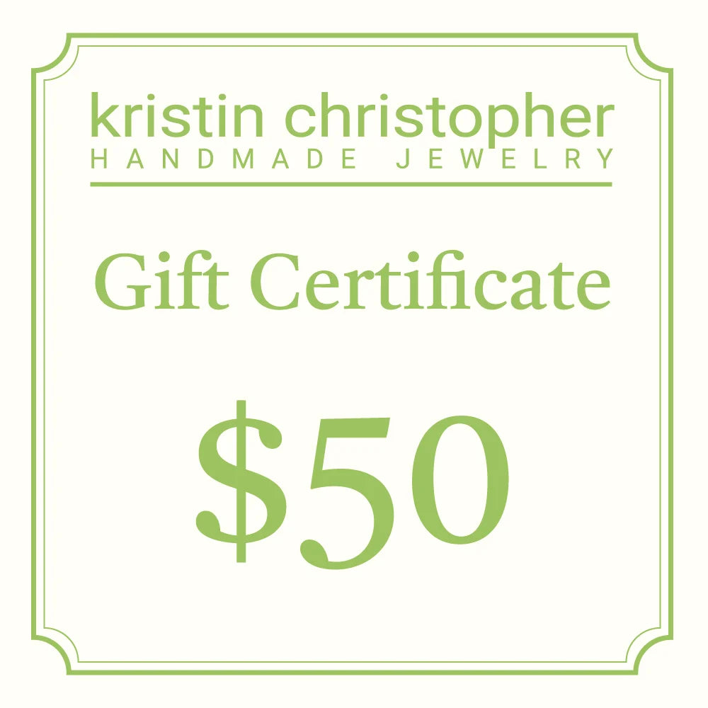 This Kristin Christopher Gift Certificate is redeemable for items in our online shop or in person at our shows.