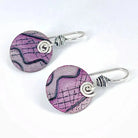 These lightweight pink copper earrings with sterling silver accents are roll-printed to create a one-of-a-kind texture pattern, hand-colored with layers and layers of Prismacolors, and sealed to maintain the vivid colors. Original art for your ears!