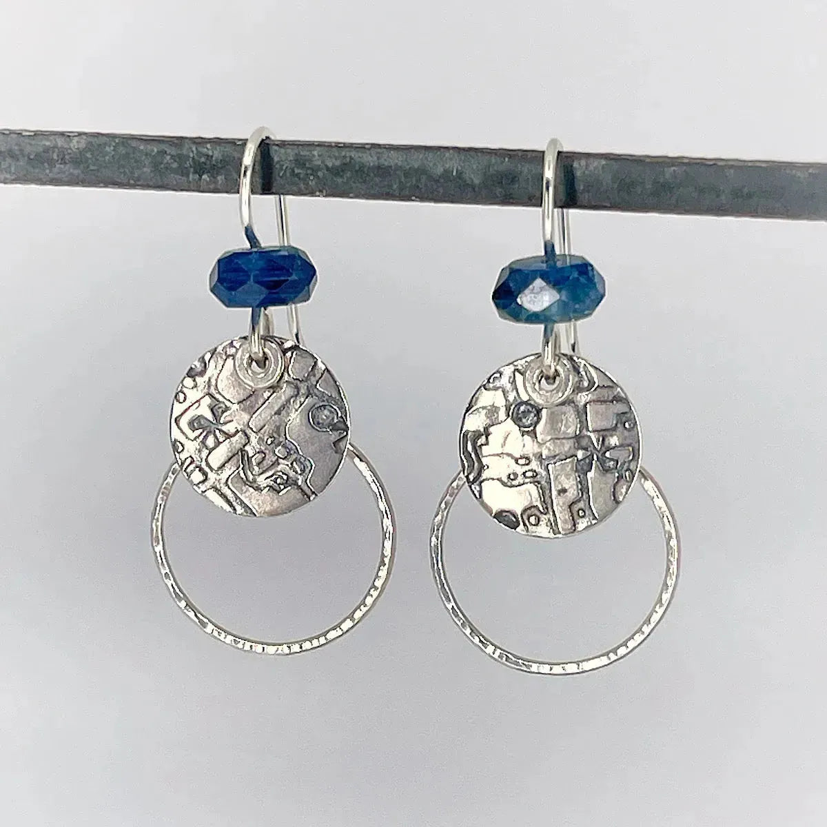 Sterling Hoop Earrings with Kyanite by Kristin Christopher