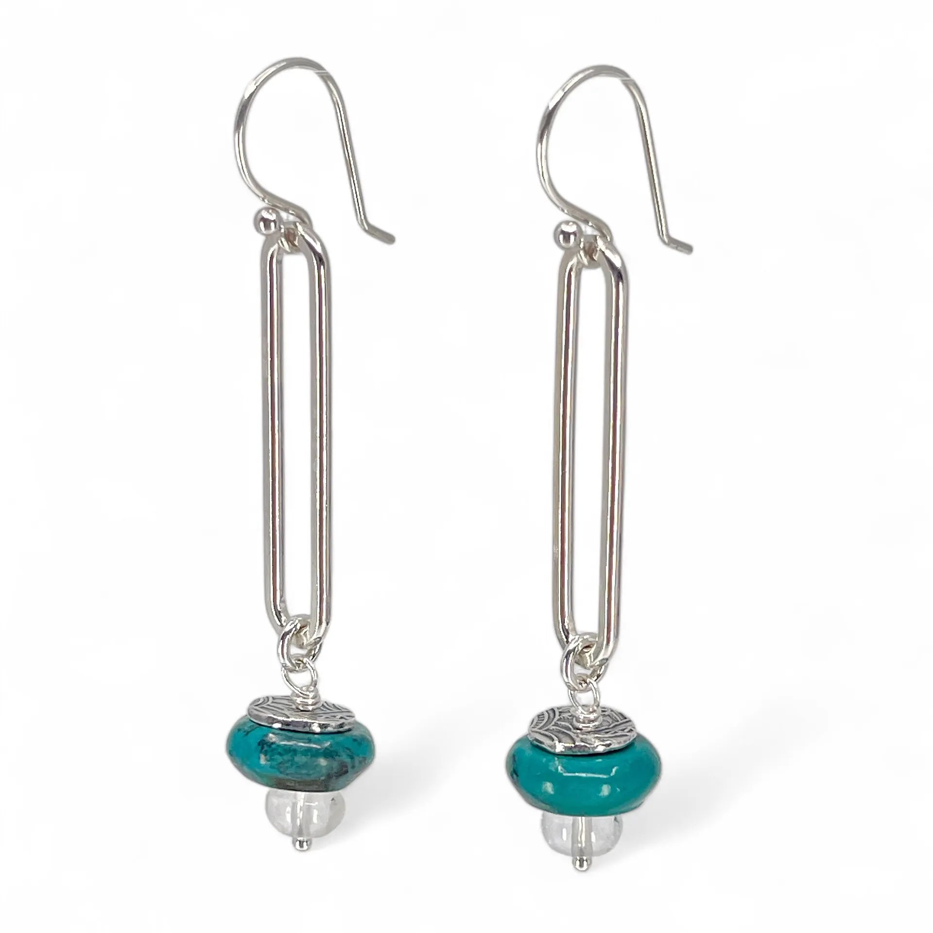 Sterling Oval Hoops with Turquoise and Clear Quartz