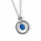 Pendant is 7/8’’ in diameter with a 18’’ sterling oval chain that adjusts to 20’’. Includes a handmade sterling hook clasp.