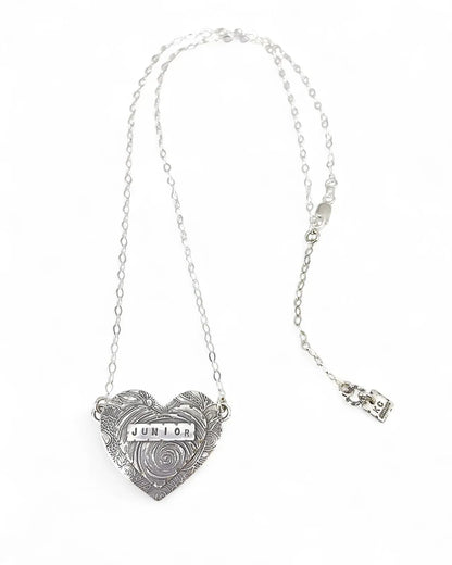 Heart pendant measures approximately 1" high by 1 1/4" wide.