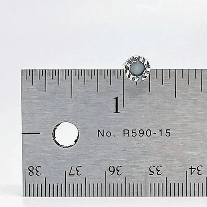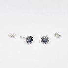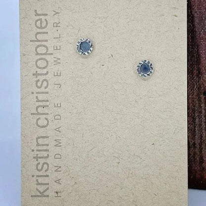 Our hand-stamped sterling silver stud earrings. A black patina adds contrast, bringing out the stamped details and depth. Sterling silver post wires and ear nuts. Satin finish.